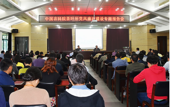 姜仁華書記在總結講話中指出,王主任給大家作了一個非常精彩的報告,報告的理論性、實踐性、針對性、指導性都很強,給我們很多思考和啟迪。通過聆聽報告,讓我們對當前黨風廉政建設和反腐敗工作的艱巨性、復雜性、長期性有了更加深刻的認識,使我們對以習近平同志為核心的黨中央作出全面從嚴治黨的戰略部署有了更加深刻的認識,使我們對進一步增強黨章意識、黨員意識有了更加深刻的認識。下一步,我們要根據上級黨組織的部署,認真開展“兩學一做”學習教育,廣大黨員干部要更加自覺學習黨章、遵循黨章,把紀律和規矩挺在前面,更加自覺的用習近平總書記系列重要講話武裝頭腦、指導實踐,進一步增強政治意識、大局意識、核心意識、看齊意識,以更高的思想覺悟、更嚴的紀律要求、更好的精神狀態積極投身到茶葉科技的各項工作當中去,為我國茶產業的健康發展提供強大的科技支撐。