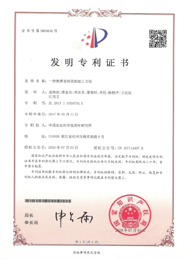 一種熟栗香綠茶的加工方法(ZL 201710329730.X)