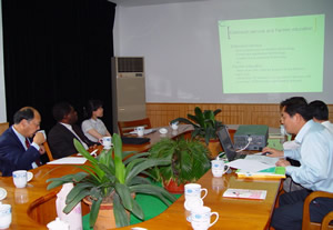楊亞軍所長(zhǎng)就我所申報(bào)的CFC“有機(jī)茶開(kāi)發(fā)、生產(chǎn)和貿(mào)易”項(xiàng)目的提出背景、有機(jī)茶在國(guó)內(nèi)生產(chǎn)情況、前期實(shí)施情況等方面向Ali Mchumo一行作了介紹。聽(tīng)取有關(guān)情況介紹后,Ali Mchumo對(duì)我所的工作給予了充分肯定。雙方就項(xiàng)目有關(guān)情況進(jìn)行了交流。