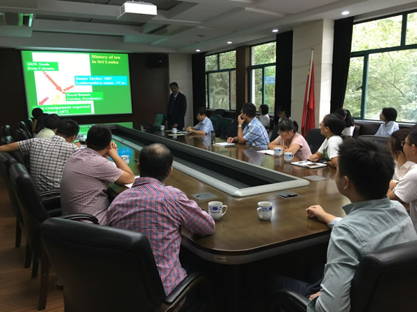 隨后我所茶樹(shù)栽培團(tuán)隊(duì)的科研人員與Wijeratne博士分別介紹了雙方在氣候變化對(duì)茶葉品質(zhì)影響方面的研究?jī)?nèi)容及取得的研究進(jìn)展,并就深入研究進(jìn)行了探討,雙方商定在氣候變化對(duì)茶葉品質(zhì)的影響,以及氣候變化應(yīng)對(duì)技術(shù)等方面開(kāi)展科技合作。在所期間,Wijeratne博士還參觀了我所種植中心、安全中心和質(zhì)檢中心等部分實(shí)驗(yàn)室,并參觀了位于淳安的龍冠公司茶葉基地。此次學(xué)術(shù)交流加強(qiáng)了我所科研人員對(duì)斯里蘭卡茶產(chǎn)業(yè)的了解,同時(shí)還為雙方未來(lái)進(jìn)行合作研究奠定了基礎(chǔ)。