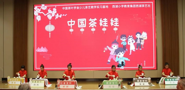 茶話會(huì)上,來(lái)自中國(guó)茶葉學(xué)會(huì)少兒茶藝教學(xué)實(shí)習(xí)基地、杭州西湖小學(xué)的六位小茶童,以“六茶寶貝”的形象登臺(tái)。悠揚(yáng)的樂(lè)聲響起,娃娃們用童音唱響原創(chuàng)茶歌《中國(guó)茶娃娃》,暖暖茶香融入音符之中,現(xiàn)場(chǎng)一片喜樂(lè)融融。樂(lè)聲漸息,小茶童們捧起茶杯,下臺(tái),行禮,為在座老茶人一一奉上暖茶。這是一杯中華文明的傳承之茶,也是敬賀新年的喜樂(lè)之茶。隨后文藝工作者們還表演了團(tuán)扇舞韻、越劇《十八相送》、魔術(shù)、江南絲竹等精彩節(jié)目。