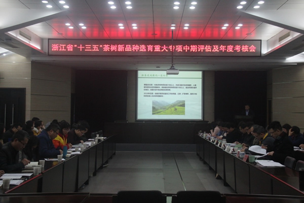 3月5日-6日,由我所牽頭組織的浙江省“十三五”農業新品種選育重大科技專項——“茶樹新品種選育”中期評估及2018年度考核會在我所召開。省科技廳農村科技處錢玉紅處長、項目主管邵暉等到會指導。本次考評會邀請了考評專家組對育種專項啟動以來及2018年度的工作進展和質量進行考評,并對育種專項與浙江省茶產業發展的關聯度進行評議。各課題和子課題主持人及部分課題組成員60余人參加了會議。會議由我所所長、茶樹育種協作組首席專家楊亞軍研究員主持。