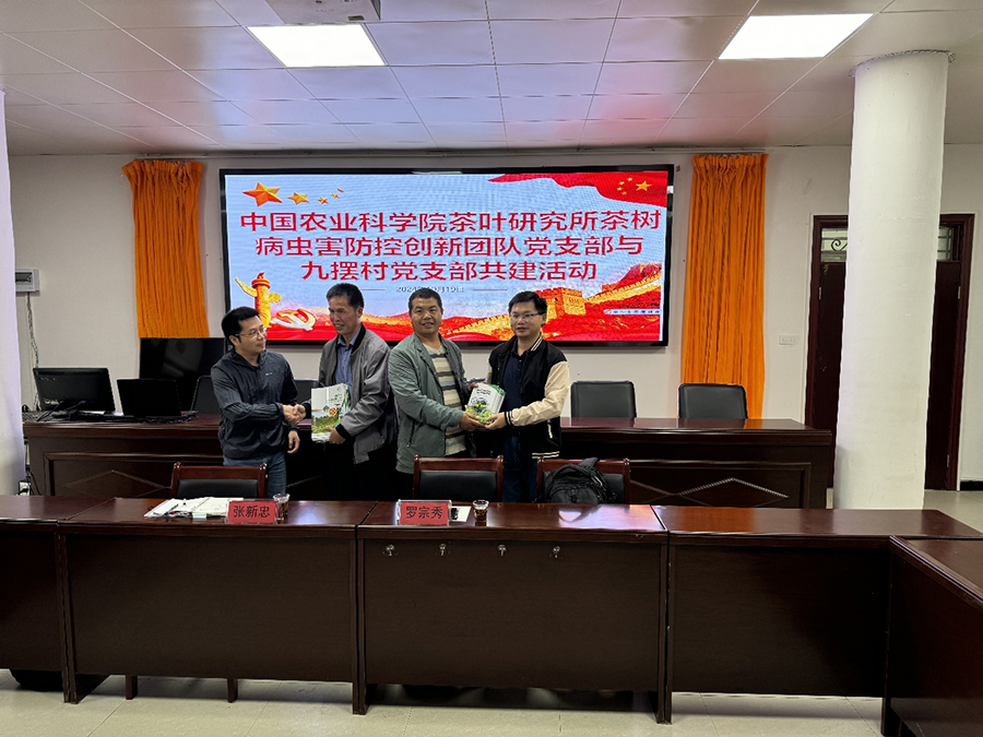 活動期間,茶樹病蟲害防控創新團隊黨支部為九擺村黨支部捐贈了病蟲害防控和茶園管理方面的書籍資料,支部成員還前往九擺村集體茶園和臺江縣多家茶企進行了技術指導。
