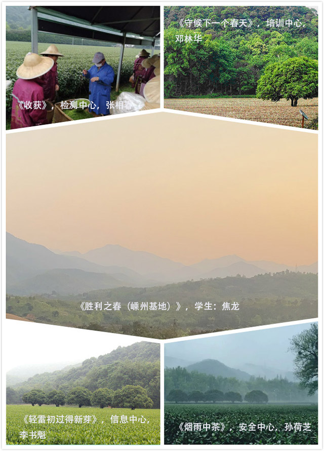 為進一步激發全所職工心系茶葉所的工作熱情,堅定大家打贏疫情防控阻擊戰的信心,4月初,所工會組織了“聚焦茶葉所印象,定格四月天精彩”為主題攝影比賽,目前已落下帷幕,全所廣大干部職工和學生積極響應,熱情參與,活動共征集到100幅作品,涵蓋了“茶園”、“景致”、“春茶生產”等主題,通過工會小組長評議,工會委員會討論,最終評選出優秀獎15幅、參與獎85幅,現將優秀獎作品展示如下: