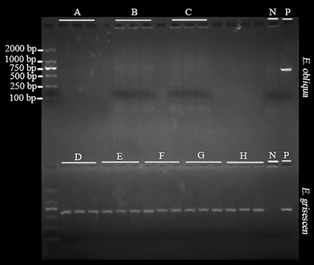 圖4 基于wsp基因?qū)?個地理種群茶尺蠖wolbachia檢測結(jié)果。A 余杭; B 溧陽; C 郎溪; D 新昌; E 貴陽; F 南昌; G 英德; H 恩施; P 陽性對照; N 陰性對照,樣品 A- C 為小茶尺蠖 ;樣品 D-H 為灰茶尺蛾。