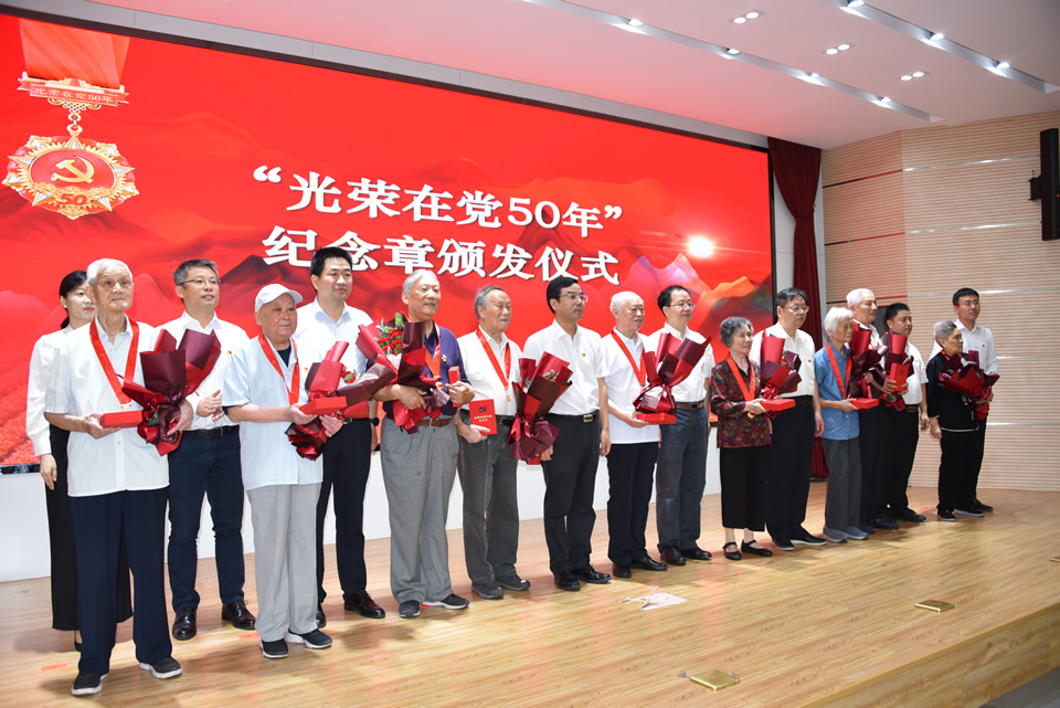 大會在雄壯的國歌聲中開始。首先,由姜仁華書記領誓,7位新黨員進行了入黨宣誓,全體與會黨員共同宣誓重溫了入黨誓詞。會上隆重舉行了“光榮在黨50年”紀念章頒發儀式,我所共有22名老黨員獲此殊榮。所領導和黨委委員為到場的18位“光榮在黨50年”紀念章獲得者頒發紀念章并獻花。會議號召全所廣大黨員干部要向老黨員們學習,對黨忠誠、堅定信念、愛崗敬業、奮力拼搏,從百年黨史中汲取精神力量,在促進研究所科學發展、服務茶產業的實踐中建功立業,以優異成績向建黨100周年獻禮。