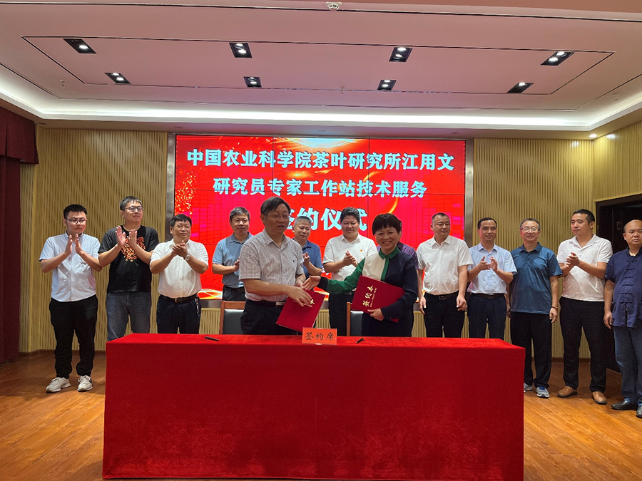 期間,我所與湘西國家農業科技園區簽署了“中國農業科學院茶葉研究所江用文研究員專家工作站”技術服務合同并現場授牌。花垣縣委常委、組織部長魯民明等參加簽約儀式。專家工作站的設立,使我所與花垣縣建立了長期合作機制。下一步雙方將通過創新產品高度、提升技術寬度、打造品牌深度,充分發揮花垣縣自然資源和專家工作站的團隊優勢,科技助推湘西茶產業綠色高質量發展。