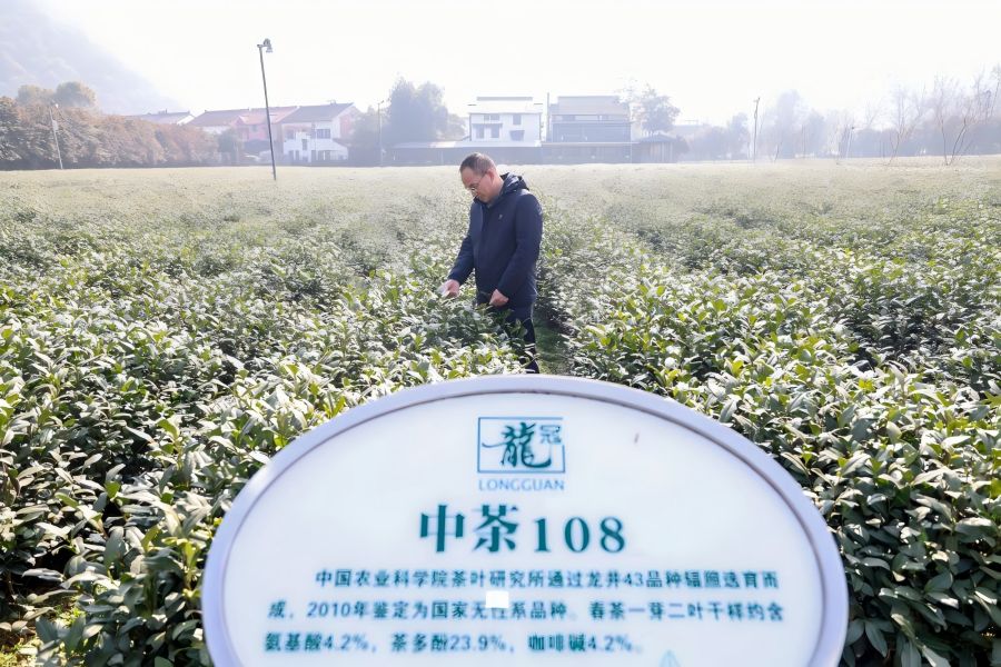 在第一代龍井茶種“群體種”基礎上,中茶所科研人員先后育成第二代品種“龍井43”和第三代品種“中茶108”。