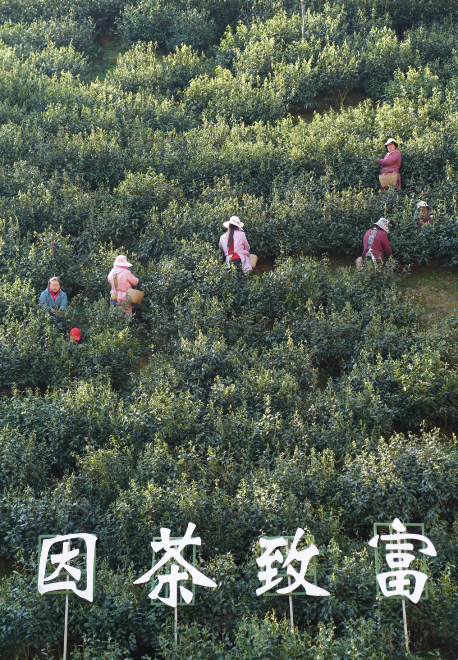 自昔關南春獨早,清明已煮紫陽茶。春分之后,在陜西省紫陽縣,連綿茶山已披上新綠。茶農指尖翻飛,嫩芽簌簌入簍。