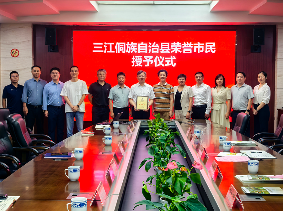 座談會后,賀瑩書記代表三江侗族自治縣人民政府,為江用文頒發“榮譽市民”證書。