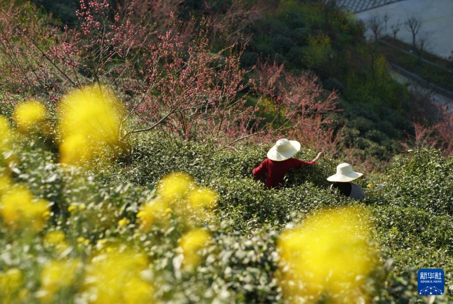 3月25日,紫陽縣城關鎮塘么子溝村茶農在茶園采茶。近日,陜西紫陽縣26萬畝春茶茶園陸續開采。