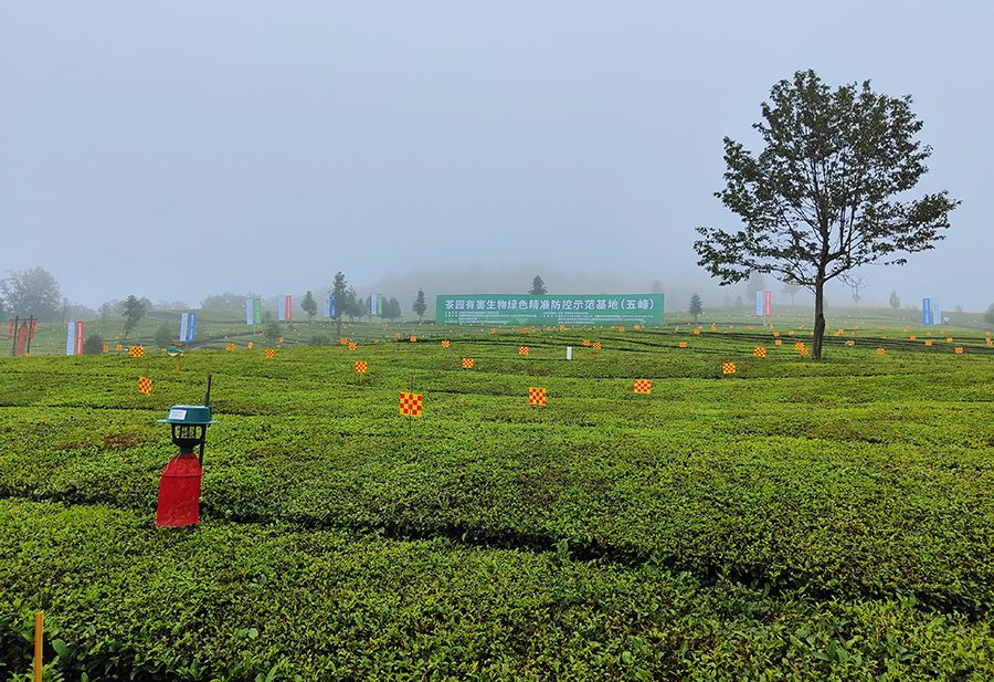 30日上午,與會(huì)代表來(lái)到五峰道家灣茶園有害生物綠色精準(zhǔn)防控示范基地現(xiàn)場(chǎng)觀摩學(xué)習(xí)。技術(shù)示范茶園內(nèi)整齊布置著茶樹(shù)害蟲(chóng)性誘捕器、天敵友好型殺蟲(chóng)燈、黃紅雙色誘蟲(chóng)板等裝置,結(jié)合高效安全生物農(nóng)藥,園內(nèi)害蟲(chóng)被有效防治,茶樹(shù)長(zhǎng)勢(shì)喜人。