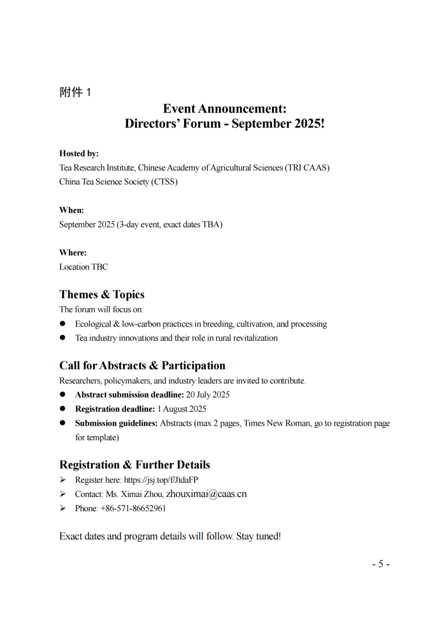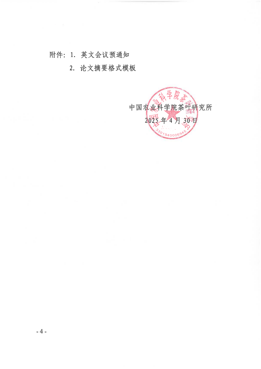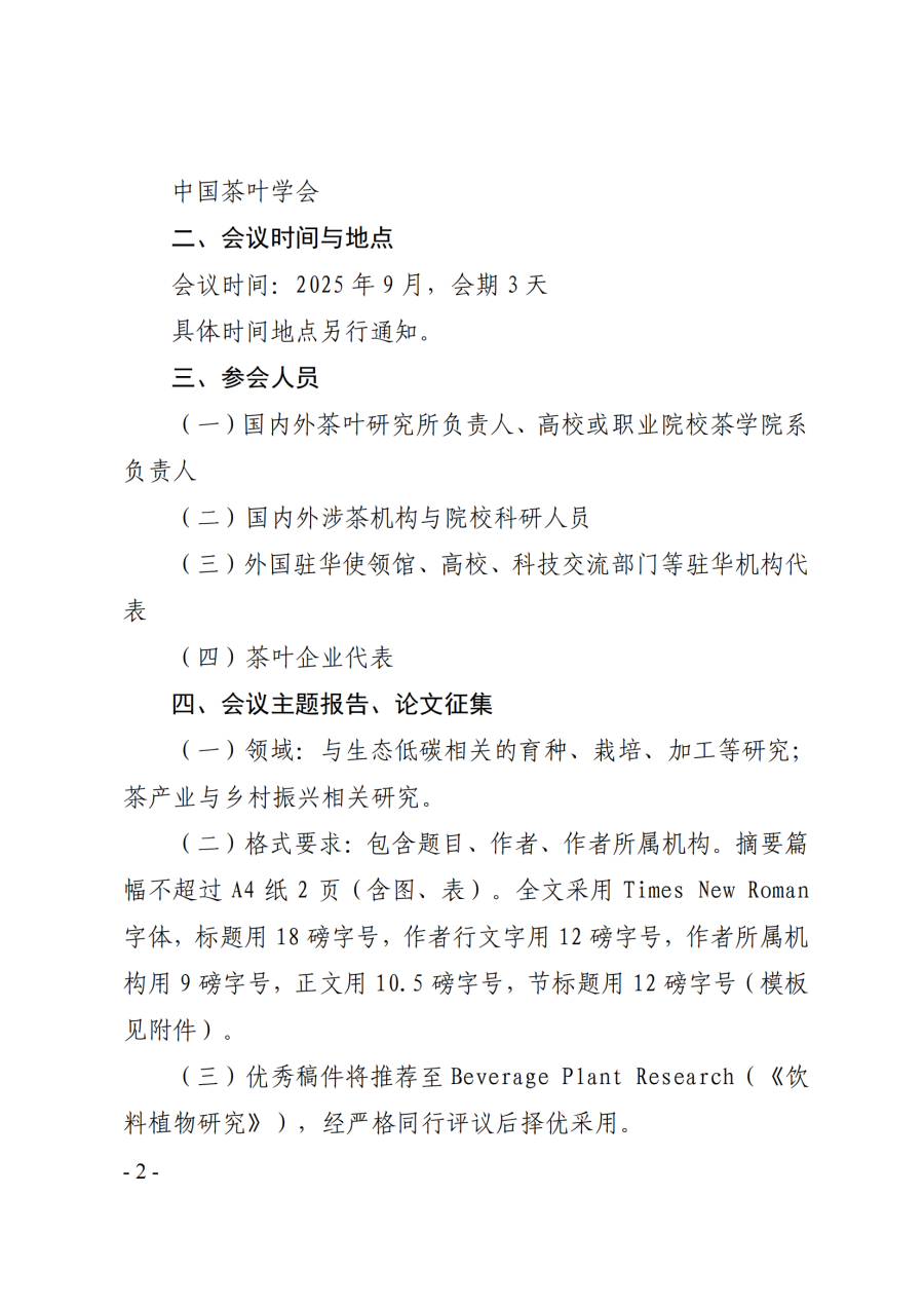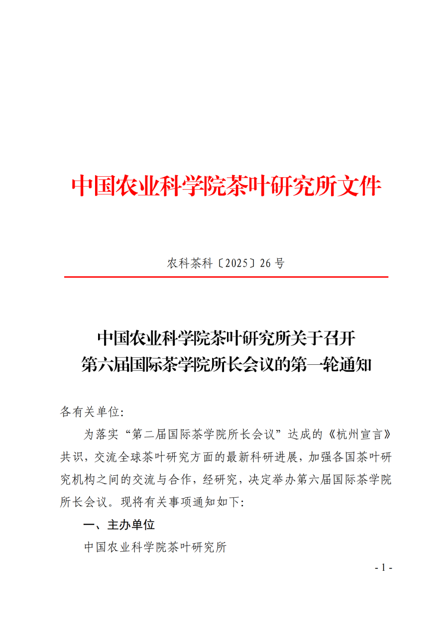 中國農業科學院茶葉研究所關于召開第六屆國際茶學院所長會議的第一輪通知