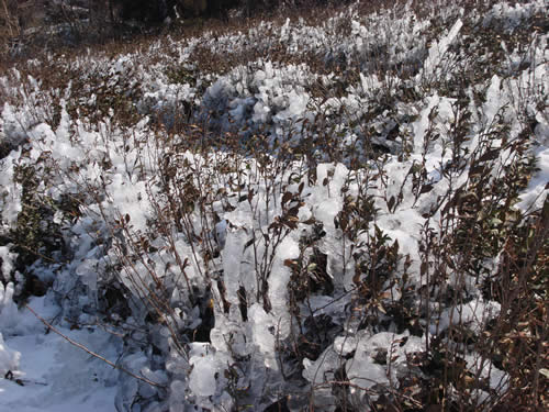 葉陽主任一行在寧海縣農林局和望府茶業有限公司基地與當地茶葉技術推廣人員、茶農進行座談,到茶園了解凍害情況。寧海縣農林局總工程師林偉平詳細介紹了全縣茶園受災情況,認為寧海茶園受凍較嚴重,據統計全縣約有10000畝成齡茶園和2000畝幼齡茶園受凍,直接經濟損失1000萬元以上,受凍嚴重的茶園主要分布在海拔400米以上的地區。他認為,茶樹凍害已成為近年來茶園急需解決的技術難題,希望能有切實有效的技術措施。